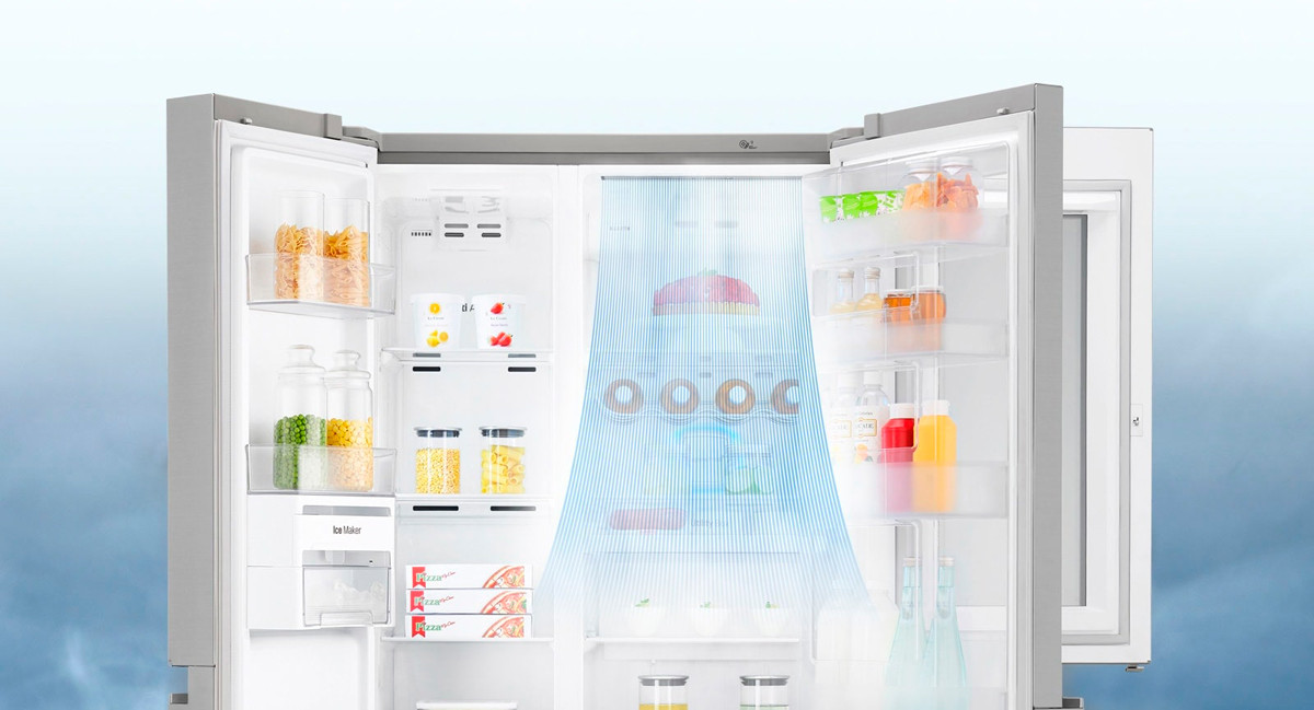 Tehnologia DoorCooling+ frigorifică și păstrează prospețimea produselor cu mult mai mult. Fluxul adițional de aer rece se dispersează uniform în interiorul camerei frigiderului și răcește produsele cu 32% mai repede, inclusiv și rafturile ce sunt amplasate la ușa frigiderului.